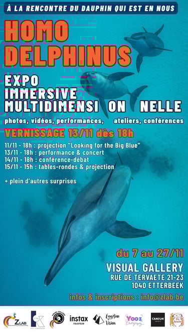 À travers un parcours captivant mêlant photographies, vidéos, performances, ateliers et conférences, découvrez la beauté, l’intelligence et la grâce du dauphin – miroir poétique de notre propre nature. L’exposition vous entraîne dans un univers d’images vibrantes, de sons enveloppants et d’émotions partagées, où chaque espace devient une escale vers la redécouverte du souffle, du mouvement et de la liberté.