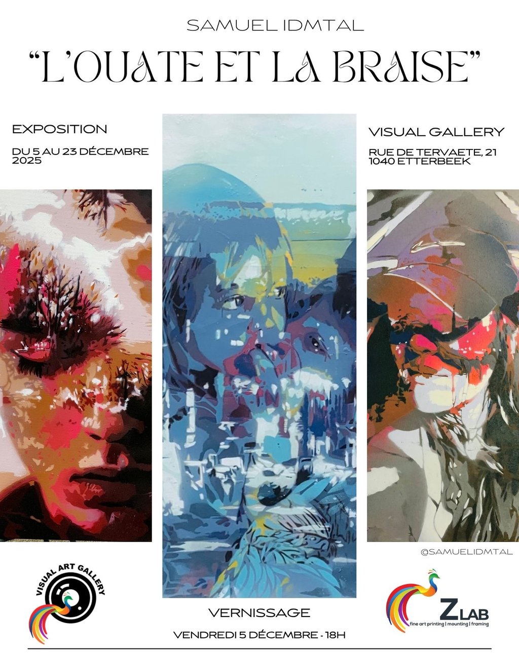 La Visual Gallery a le plaisir de vous inviter au vernissage de "L'Ouate et la Braise", une exposition de Samuel Idmtal à découvrir du 5 au 23 décembre 2025, rue de Tervaete, 21-23 à 1040 Etterbeek. Le vernissage aura lieu le vendredi 5 décembre 2025 à partir de 18 heures. Nous espérons vous y voir !
